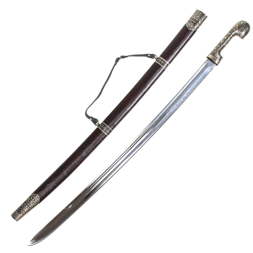 Кавказская шашка Есаул (ножны – мельхиор и натур.кожа, красная)