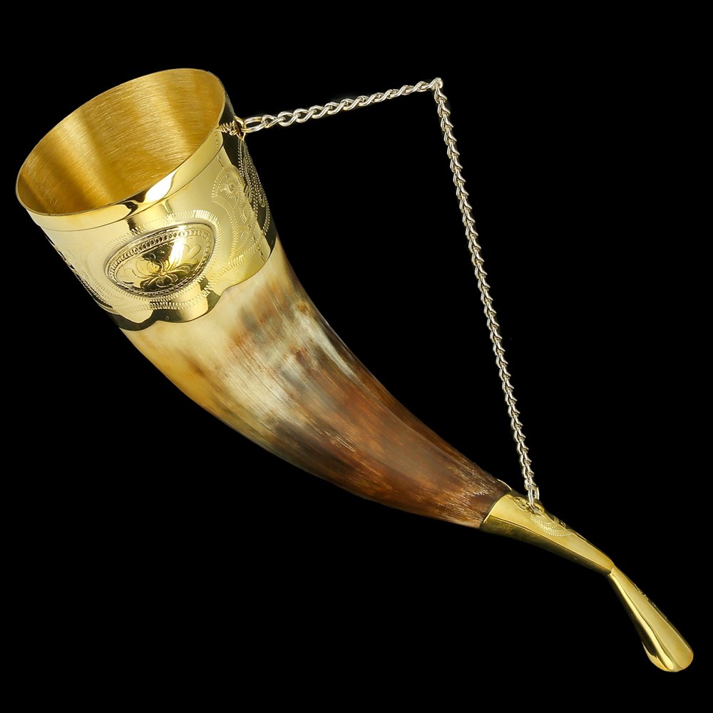 Кавказский рог бычий малый (отделка - латунь, медальоны - латунь)