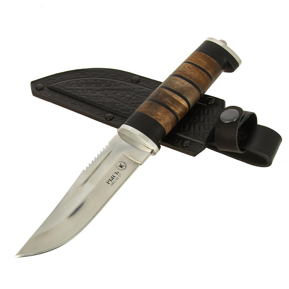 Нож Рысь (сталь Х50CrMoV15, рукоять орех, наборная кожа)