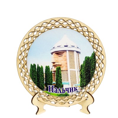 Сувенирная тарелка ручной работы "Нальчик" на подставке